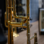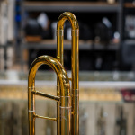 Oil: YamahaThis used 1986 Benge Symphonic 190F large-bore tenor trombone with F attachment is in very good condition. Manufactured in Eastlake, Ohio, it retains about 90% of its original lacquer. There are a few minor dents in the bell flare and main tuning slide, but otherwise the horn is in great shape with no issues that affect playability. We gave it a professional cleaning and precision rotor alignment, and the slide and rotor action are both excellent and feel smooth and responsive.