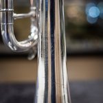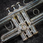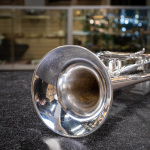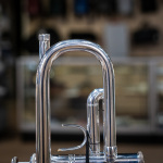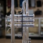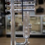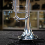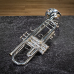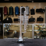 Used 1996 Bach Stradivarius 180S37 Bb trumpet in good condition. We gave this well-used horn a professional cleaning and precision valve alignment, and we found valve compression best with a thicker oil like Berp 3. Cosmetically, it's got some wear -- plating loss at the contact points on the valve casings and third slide, as well as evidence of repairs here and there, and a tiny bit of red rot in the leadpipe and main tuning slide (easily managed with proper care). The valve action is very good, and it plays with a rich tone that skews a little to the darker side. Response and intonation are both very good. This is an excellent all-around horn for the advancing student or pro on a budget. No case.