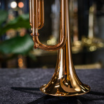 Used Adams A9 Bb trumpet in very good condition. This is Adams' take on a medium bore Martin Committee with a gorgeous copper finish and Martin-styled waterkey levers. The finish is copper lacquer, though the horn is constructed mostly of yellow brass, and the leadpipe (which we replaced some time ago) is raw brass. We gave this beautiful Adams trumpet a pro cleaning and precision valve alignment, and it's in very good shape overall with some evidence of minor repairs at the back of the bell stem (and the replaced Adams leadpipe). The leadpipe shows the very beginnings of red rot, but it's minor and can easily be mitigated with proper care and maintenance. It plays sweet and smoky down low, and can bark quite a bit upstairs, with great valve action and compression. No case.