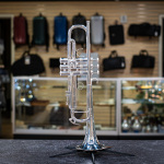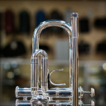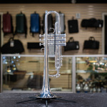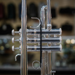 Used 2024 Bach Stradivarius 190S72X Bb trumpet in excellent condition. We gave this late-model Bach a professional cleaning and precision valve alignment, and valve action and compression are both like new. The silver plating is in fantastic shape save for a couple of small scuffs on the bell and one on the back turn. Other than that, there's no significant wear or evidence of repairs. When most folks think of a Bach 72, they think of a big, dark, Teutonic sound -- this is definitely not that. The 190S72X is lightweight and has enough fire and sizzle for any commercial gig. The ML bore and #43 leadpipe are very comfortable and balance the large-throated bell extremely well, combining for a broad, fat, brilliant sound. Comes with original Bach-branded Gard bag in great shape, with just very minor scuffs on it.
