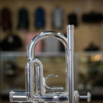 The S.E. Shires Model 401 trumpet is the latest version of our original signature C trumpet. It features a uniquely balanced heavyweight “4”bell taper, which combines a big, powerful sound with easy response. The bell of the 401 updates the design of traditional C trumpet bells in that it is bent slightly shorter, resulting in a Z-brace placement closer to the bell bend. For some players, this can solidify the feel and quicken response. Matched with the open 401 leadpipe and the centered and projecting WF tuning slide, it produces an ideal balance of breadth, clarity, depth, and projection. Yellow-brass balusters add warmth to the sound while nickel-silver valve caps add brilliance and character, increase its core, and contribute to cleanness and immediacy of attack.